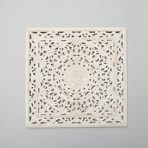 White Square Handcrafted Wooden Wall Decor | Elegant Home Accent
